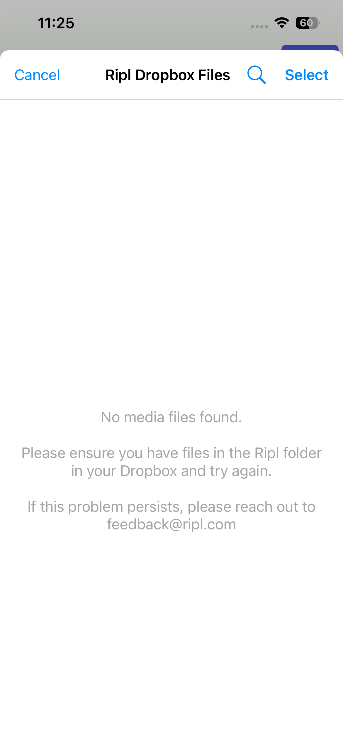 The below instructions will help if you’re logged into the wrong Dropbox account or seeing connection issues. Please use these instructions as well if you see an infinite loading screen when trying to select a file from Dropbox in Ripl.